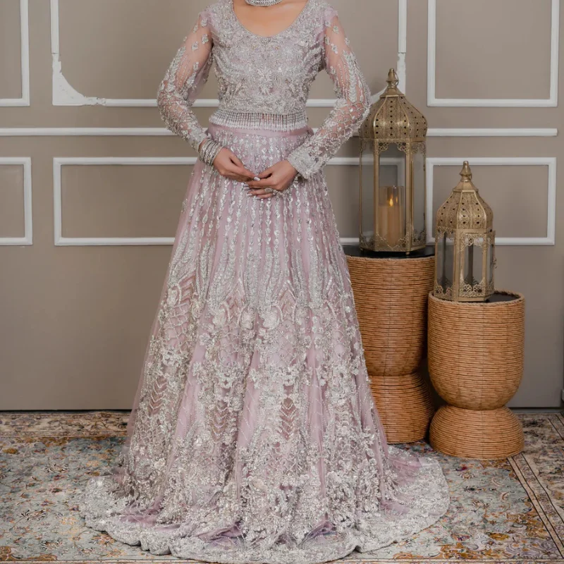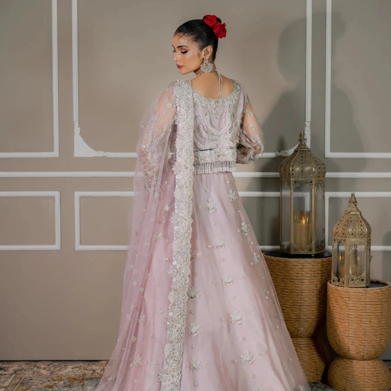 Each lehnga is carefully handcrafted by our master artisans, using the finest fabrics and intricate hand-embroidery. The exquisite detailing, paired with luxurious embellishments, creates a captivating effect, ensuring that every step you take will be nothing short of enchanting. The soft, flowing fabric complements the bold, delicate embroidery, delivering a balanced design that speaks to your unique bridal journey.